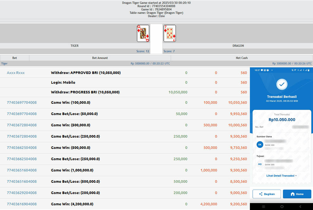 JACKPOT LIVE CASINO MAIN DRAGON TIGER | 31 MARET 2025, Kemenangan Live Casino, Bukti Kemenangan Live Casino, Kemenangan Live Casino Diamond Roulette, Menang Live Casino Online, Live Casino, Situs Aman Terpercaya, WD Berapapun Pasti DI Bayar Tuntas, Kemenangan Live Casino.