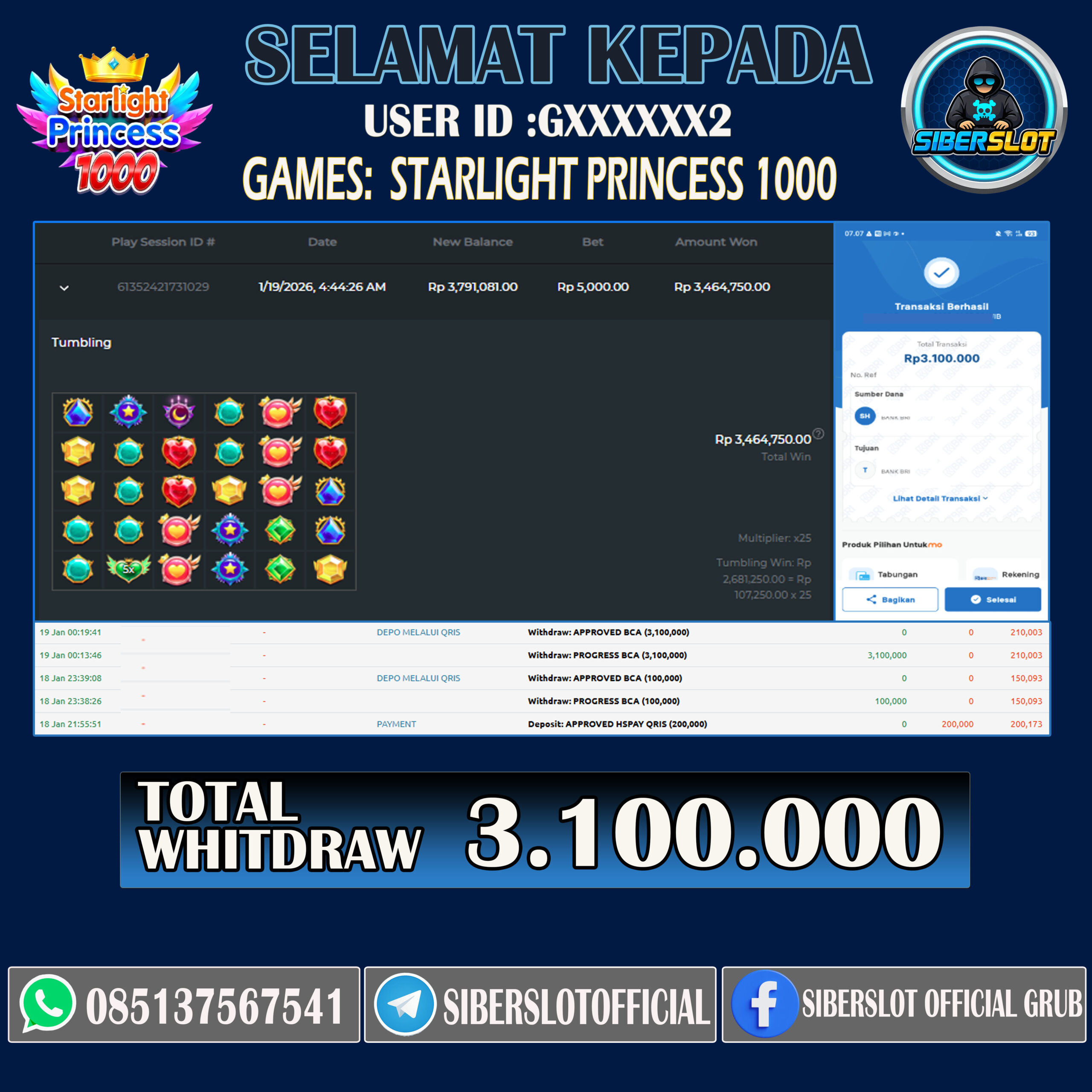TOTAL KEMENANGAN : Rp.3.100.000